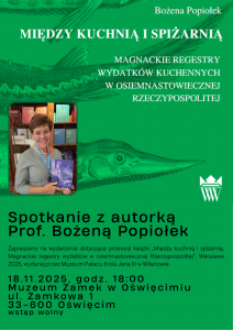 zapraszamy na spotkanie promujące najnowszą publikację Bożeny Popiołek zatytułowaną “Między kuchnią a spiżarnią. Magnackie regestry wydatków kuchennych w osiemnastowiecznej Rzeczypospolitej”, Wilanów 2025 r. Szczegóły znajdują się na plakacie.